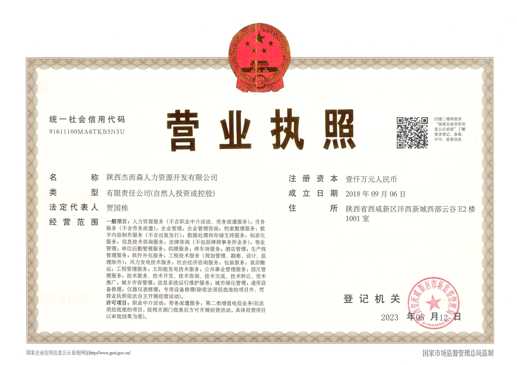 陜西杰而森人力資源開(kāi)發(fā)有限公司成立于2018年,是一家以人力資源服務(wù)為主業(yè)的市場(chǎng)化專業(yè)機(jī)構(gòu)。公司總部位于陜西省西咸新區(qū)秦創(chuàng)原人才大市場(chǎng),下設(shè)6家分子公司。公司的主營(yíng)業(yè)務(wù)包括:勞務(wù)派遣、勞務(wù)外包、業(yè)務(wù)流程外包、招聘、培訓(xùn)、檔案整理和電子化等服務(wù)。